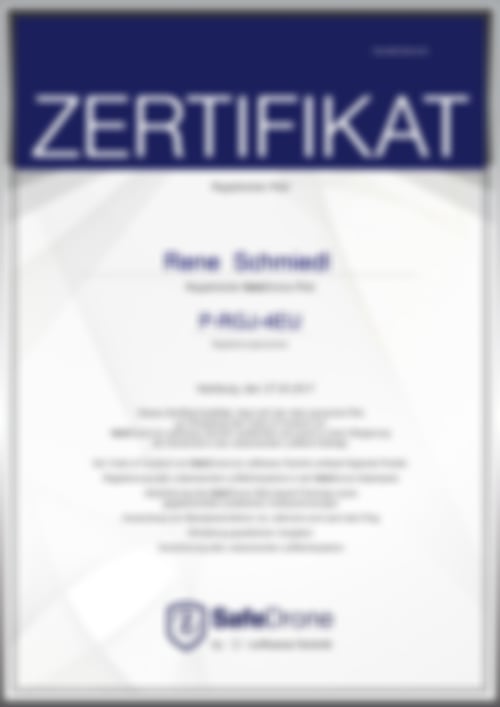 ![]() | Safe Drone Zertifikatfür unsere virtuellen Luftaufnahmen |