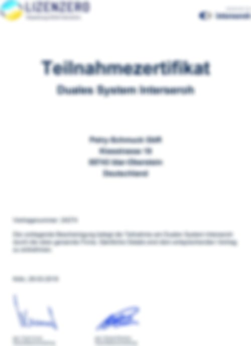 ![]() | Zertifiziert nach dem neuenVerpackungsgesetz 2019(VerpackG) |